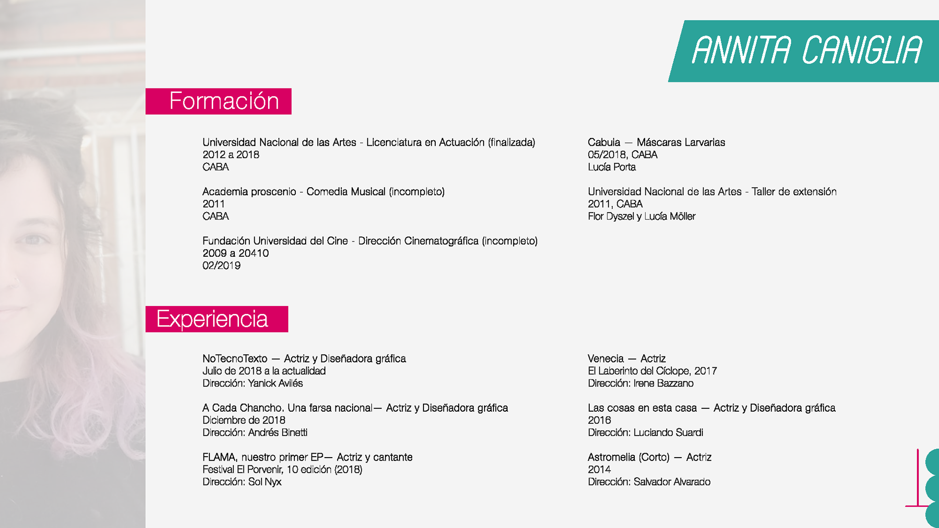 es una compañía teatral para la que se hizo toda la identidad: creación del nombre, logos, carpetas, edición de fotos y videos, flyers, etc.